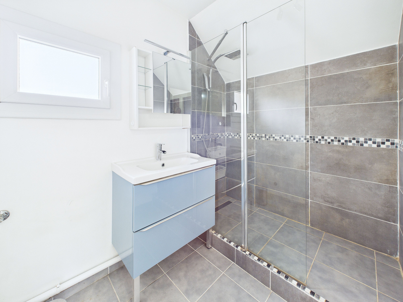 À l'étage, la maison propose trois chambres ainsi qu'une salle de bains. Les combles, accessibles, offrent une pièce supplémentaire pouvant servir de petit espace de rangement, de bureau d'appoint ou de coin loisirs ; on y tient debout principalement au centre, ce qui en fait un volume d'appoint à utiliser selon ses besoins.