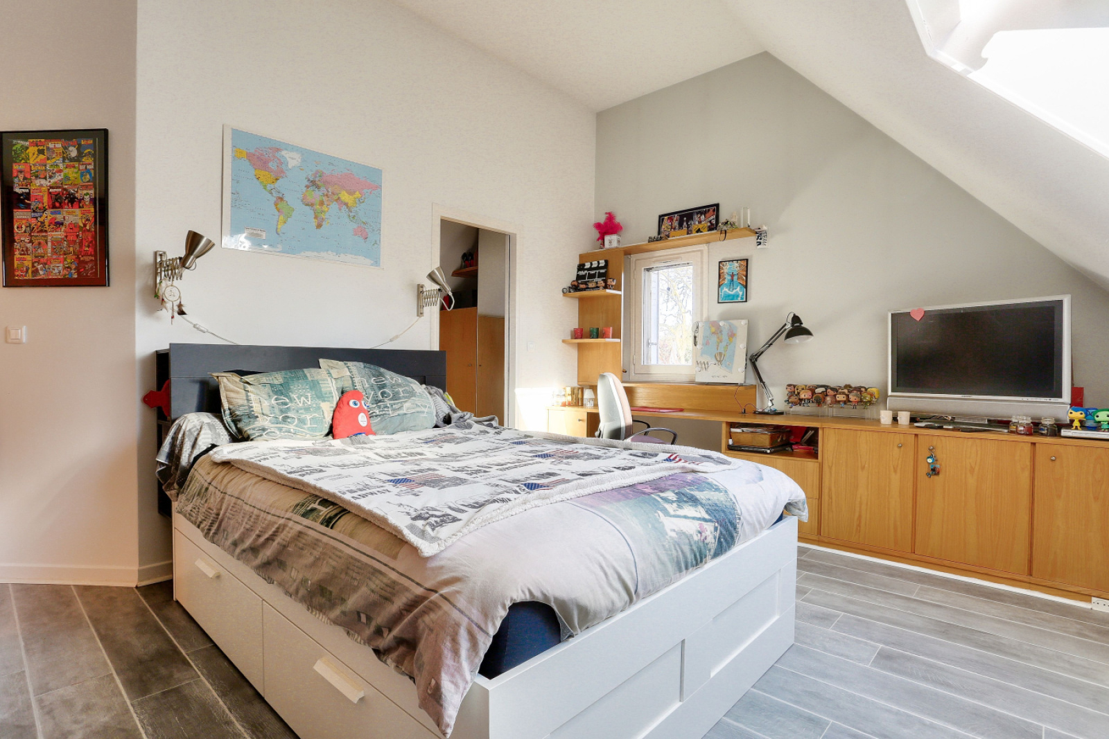 - Salle de jeux ou chambre avec fenêtre et accès extérieur