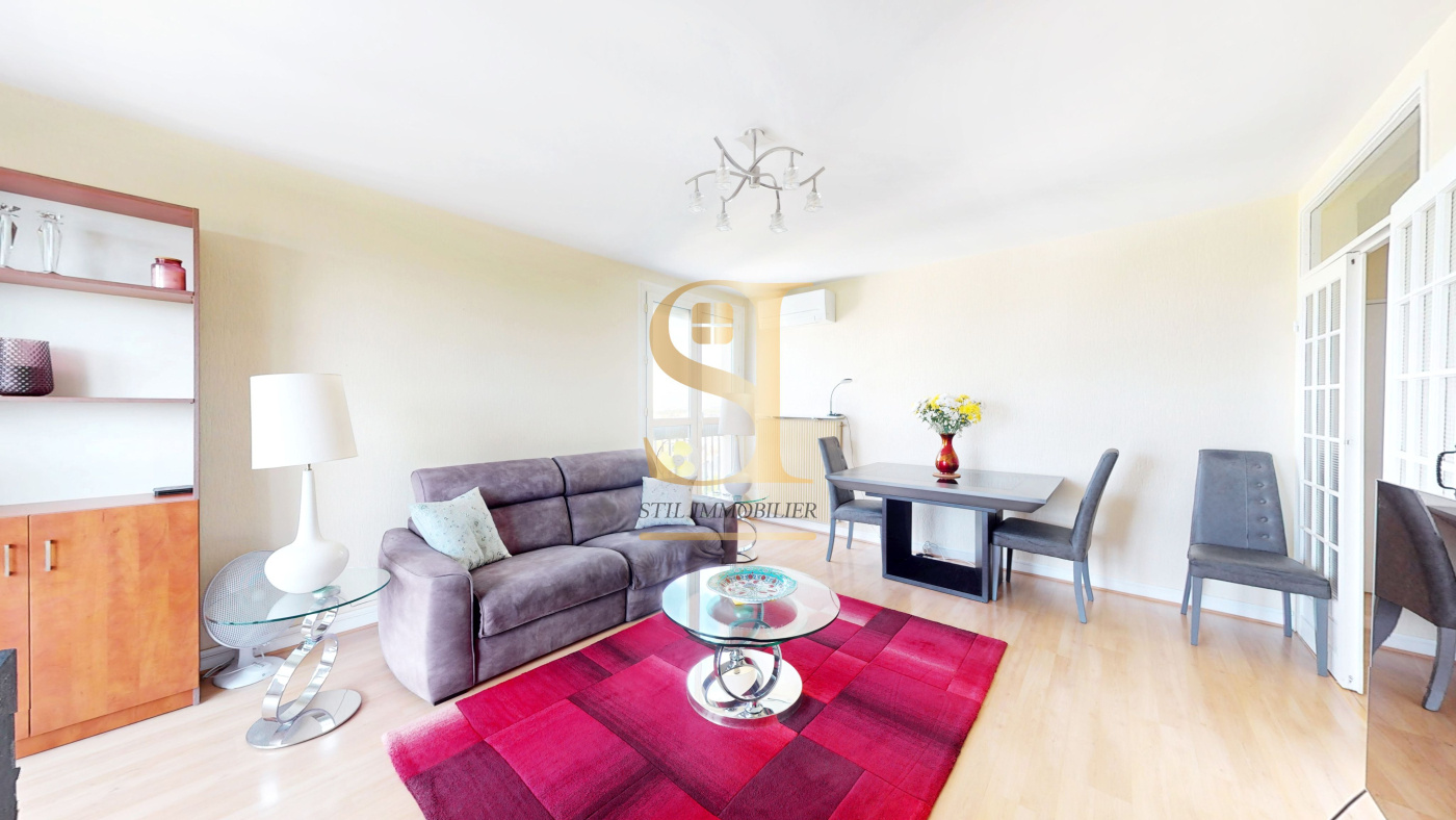 Le séjour, baigné de lumière grâce à sa double exposition, s'ouvre sur un balcon couvert offrant une vue dégagée, sans vis-à-vis. La cuisine indépendante peut être ouverte sur le séjour pour créer une belle pièce de vie conviviale selon vos envies. Une loggia fermée complète l'espace, parfaite pour un coin buanderie ou un espace détente.