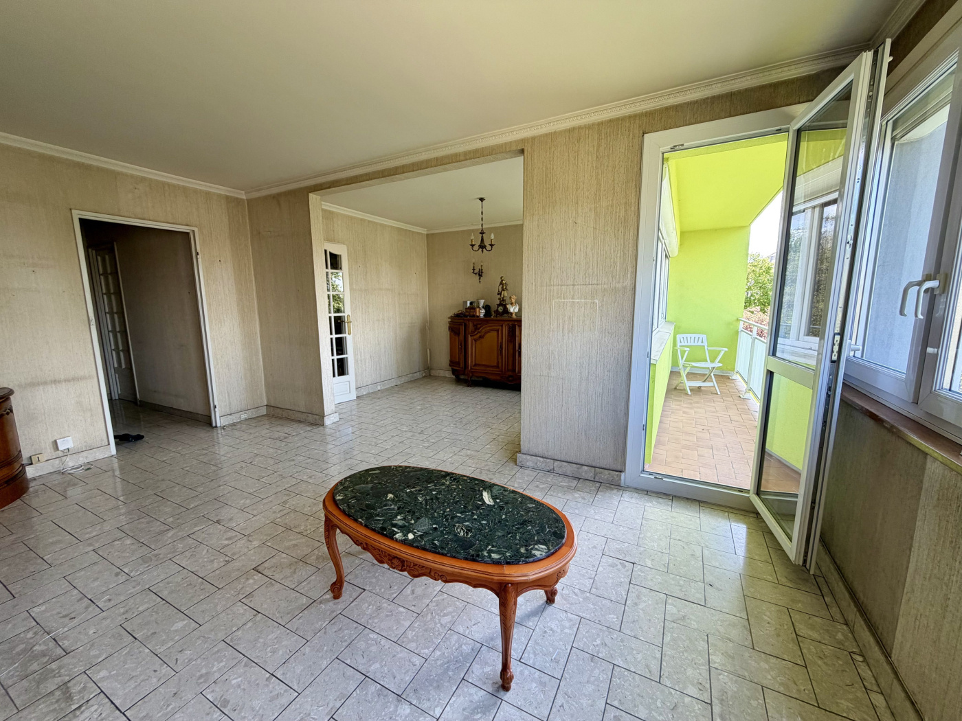 Il se compose d'une entrée desservant un double séjour lumineux avec accès à un balcon. La cuisine, indépendante, est complétée par un cellier attenant.