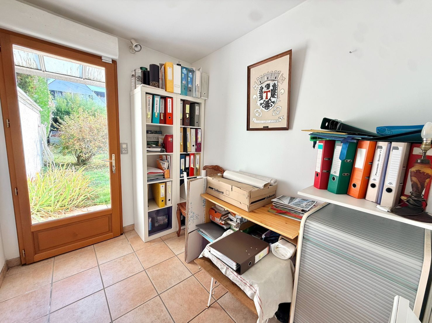 Au rez-de-chaussée, vous trouverez également une chambre, une salle de bain, un WC séparé ainsi qu'un cellier, une buanderie et un bureau .