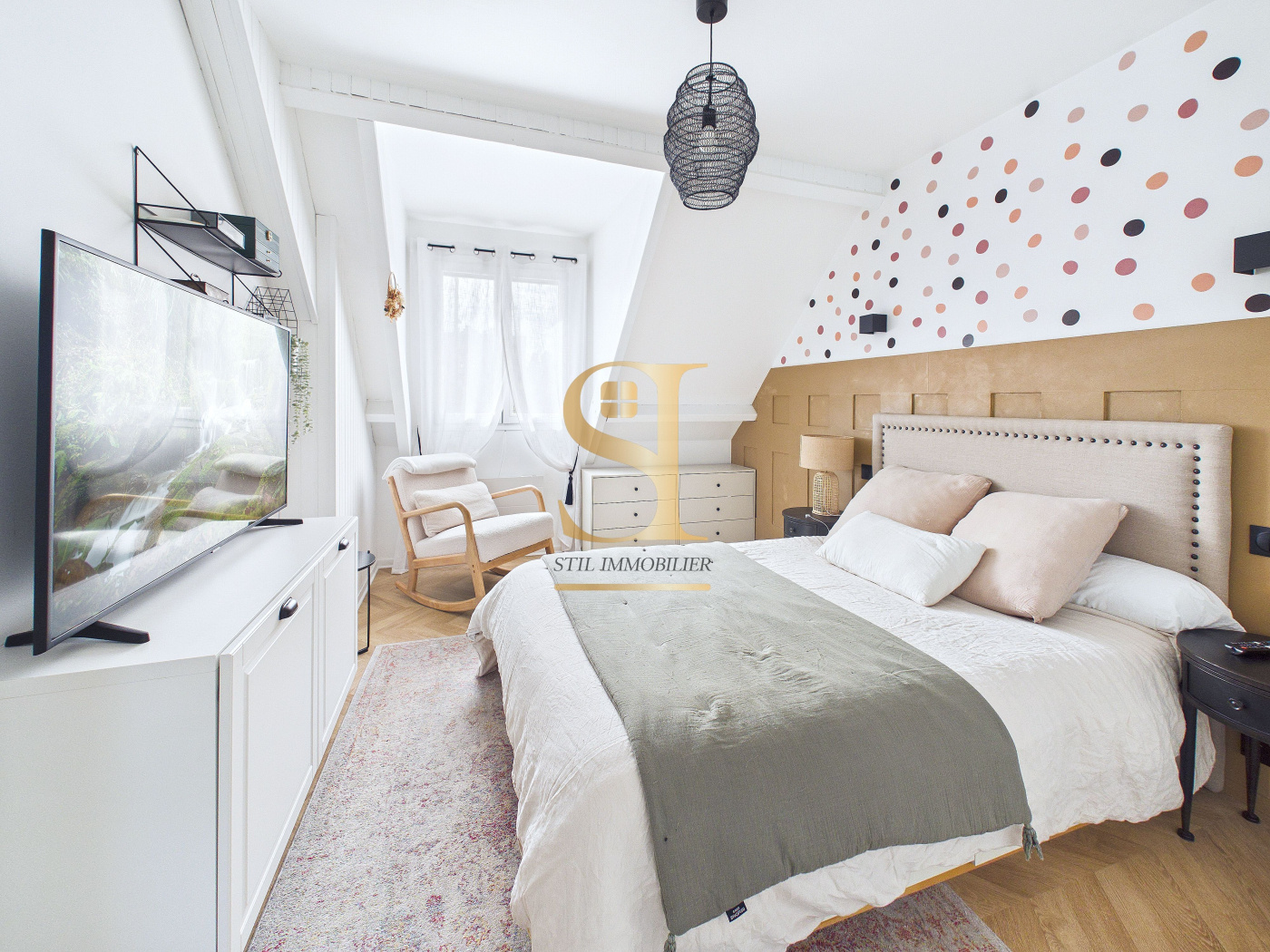 À l'étage, vous découvrirez un bel espace bureau, une grande salle de bains, un WC indépendant ainsi que trois grandes chambres, dont l'une bénéficie d'un balcon privatif.