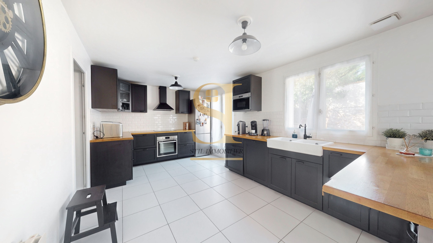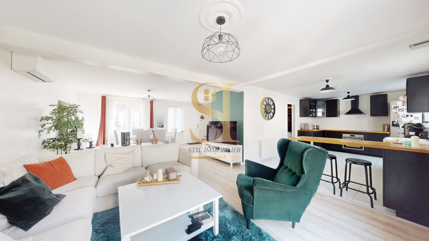 Dès l'entrée, vous découvrirez une superbe pièce de vie lumineuse, aux volumes généreux, intégrant une cuisine équipée et aménagée, ouverte sur le séjour le jardin, offrant un espace convivial et chaleureux, idéal pour la vie de famille comme pour recevoir.